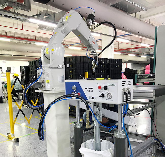 進行精密涂膠操作,如涂膠存在角度問題,可考慮用四軸方案解決。